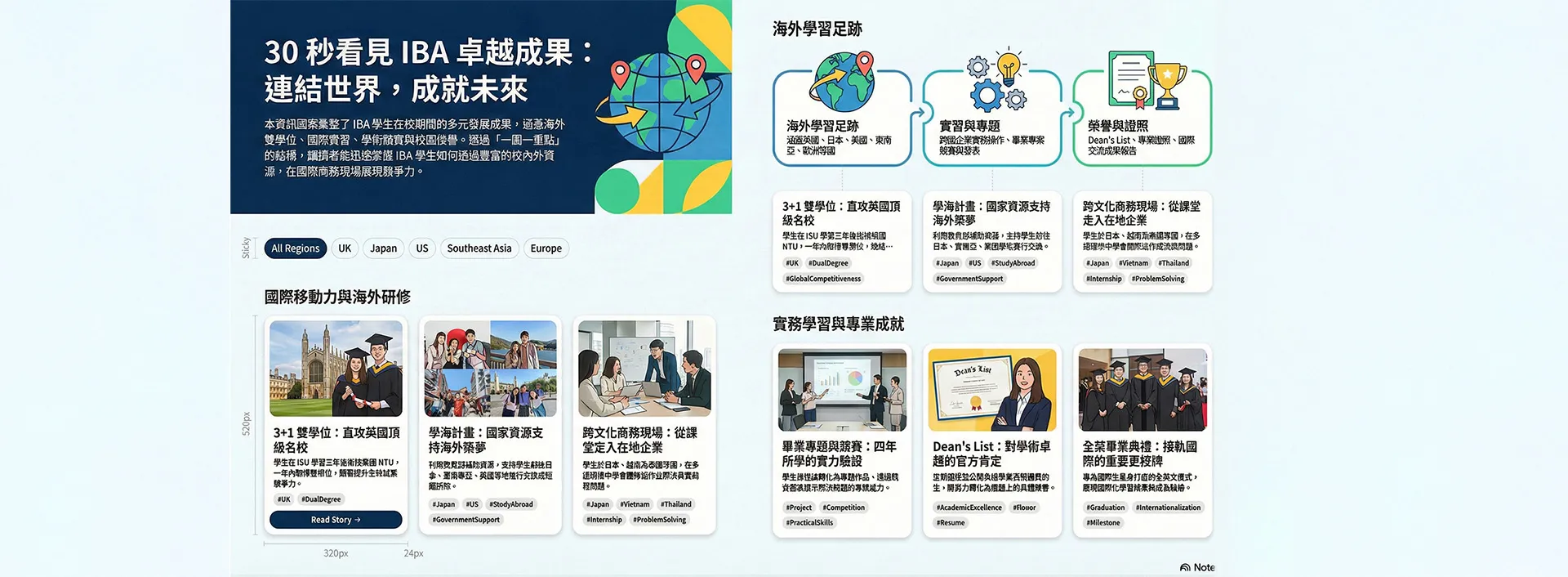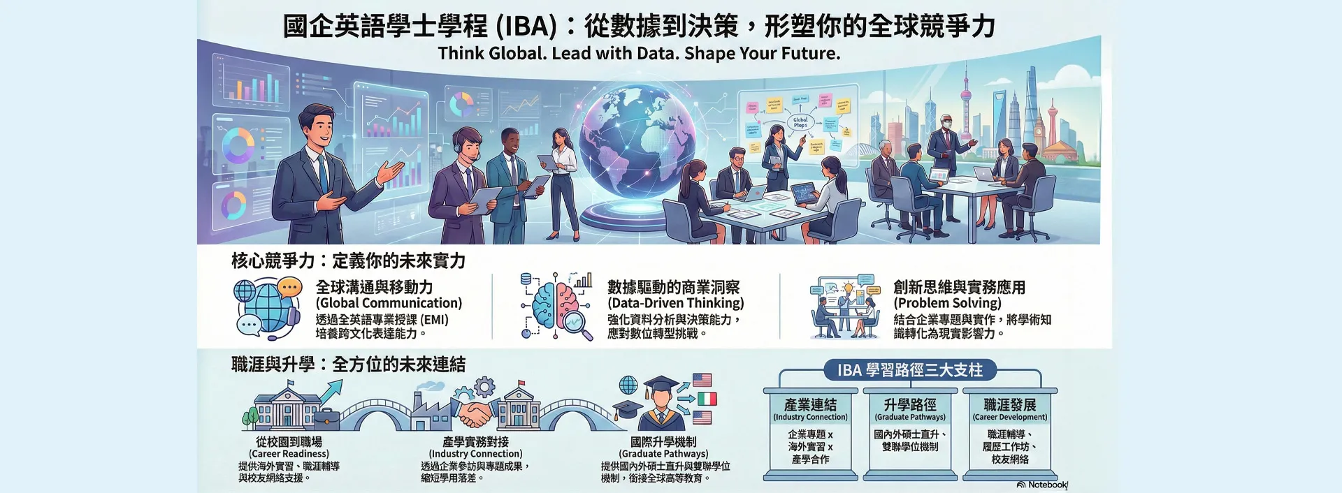 畢業後你將成為具備國際視野的領導者,透過海外交換、實習與強大的全球校友網絡,輕鬆敲開跨國企業大門。無論是投身國際行銷、顧問或創業,IBA 的專業背景將讓你成為各界爭相招攬的全球化菁英!